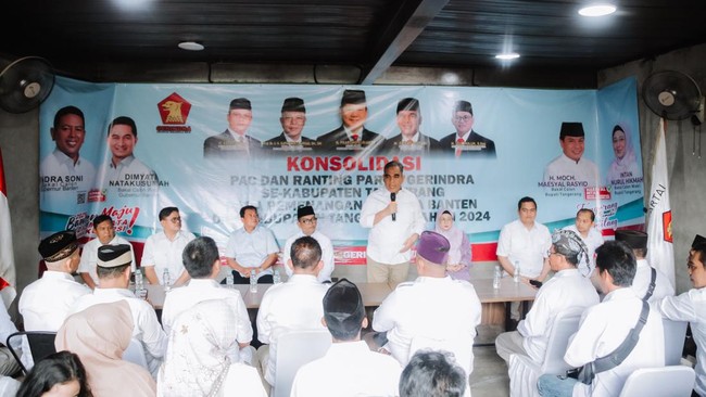Hal ini disampaikan saat memberikan arahan ke seluruh pengurus anak cabang dan ranting Gerindra se-Kabupaten Tangerang. Ia juga meminta kader untuk memenangkan pasangan yang diusung oleh Gerindra yaitu Maesyal Rasyid-Intan Nurul Hikmah.