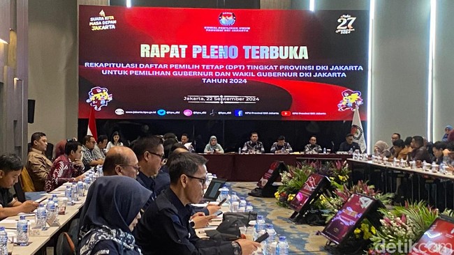 Komisi Pemilihan Umum (KPU) DKI Jakarta melaksanakan rapat pleno terbuka rekapitulasi daftar pemilih tetap (DPT) tingkat provinsi DKI Jakarta untuk Pilgub Jakarta 2024. Sebanyak 8.214.007 jiwa ditetapkan dalam daftar pemilih tetap (DPT) Provinsi Jakarta.
