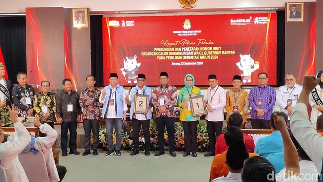 KPU Provinsi Banten melakukan pengundian dan penetapan nomor urut pasangan calon gubernur dan wakil gubernur Banten 2024. Hasilnya pasangan Airin Rachmi Diani-Ade Sumardi mendapatkan nomor urut 1, sementara pasangan Andra Soni-Dimyati mendapatkan nomor urut 2.