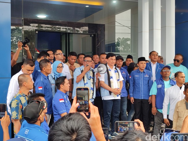 Andra-Dimyati datang ke kantor DPD Demokrat di Jl Syekh Nawawi Al Bantani. Keduanya lalu melakukan pertemuan dengan seluruh kader Demokrat.