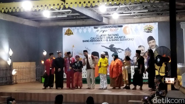 Pasangan RIDO turut didampingi budayawan Betawi sekaligus pengurus sanggar seperti Ramdhani Hasbullah atau Qubil AJ serta Opie Kumis. Selain menonton, Ridwan Kamil juga sempat naik panggung menyampaikan akan menggunakan momen-momen pertunjukan untuk sosialisasikan program.