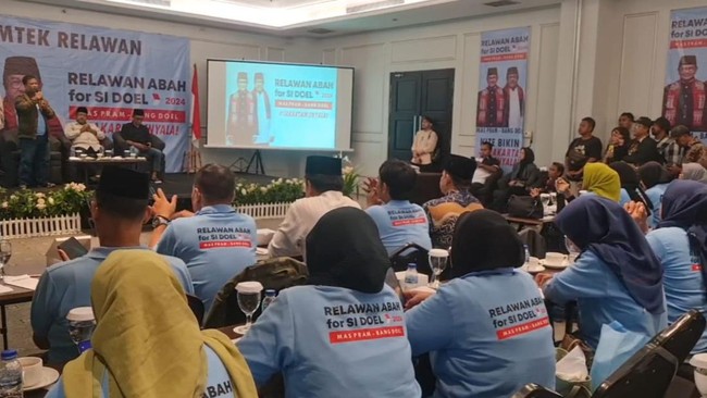 Sekelompok orang yang menamakan diri sebagai Relawan Abah for Si Doel memberikan dukungan kepada pasangan Pramono Anung-Rano Karno di Pilkada Jakarta. Kelompok relawan ini menggunakan kaos biru muda dan bentuk tulisan yang sama dengan pendukung Prabowo-Gibran saat Pilpres lalu.