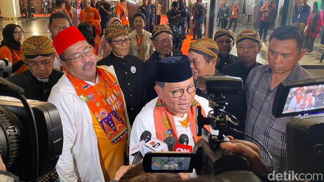 Terlihat Ketua Timses Calon Gubernur-Wakil Gubernur Jakarta Pramono-Rano, Lies Hartono alias Cak Lontong, mendampingi. Pramono-Rano juga ditemani oleh sejumlah pemain 'Si Doel Anak Sekolahan', mulai Bang Mandra, Suti Karno alias Atun, hingga Cornelia Agatha alias Sarah.