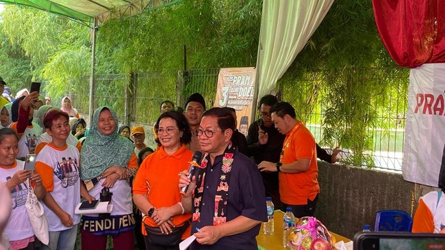 Calon Gubernur Jakarta Pramono Anung berkunjung ke permukiman padat penduduk di Kedoya Utara, Jakarta Barat (Jakbar). Pramono pun menyampaikan janji ke warga soal penataan kampung.