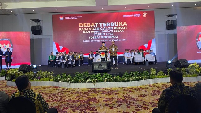 "Bersinar bersih hatinya, niatnya, bersih dari korupsi dan nepotisme, bersih lingkungannya, bersih alamnya, bersih kotanya dan kita juga bersih kehidupan lingkungan," kata Sanuji dalam debat Pilbup Kabupaten Lebak, Jumat (25/10/2024).