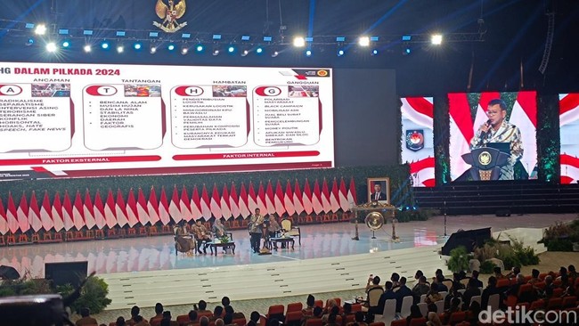 "Yang pertama pada saat pelaksanaan kampanye. Ini juga banyak gangguan-gangguan, dan ancaman yang berpotensi mengganggu terhadap pelaksanaan pilkada," kata Herindra dalam Rakornas Pemerintah Pusat dan Daerah di Sentul, Bogor, Kamis (7/11/2024).