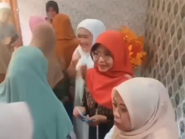 Dari video yang dilihat detikcom, Sabtu (9/11/2024), tampak Dewi membagikan uang pecahan Rp 50 ribu kepada warga. Terlihat warga berbaris menunggu giliran untuk bersalaman dan mendapatkan uang.