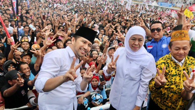 "Saya dan Mas Emil tentu mengucapkan terimakasih kepada semua elemen. Semua komponen partai pengusung ada relawan yang luar biasa, masyarakat yang luar biasa," kata Khofifah.