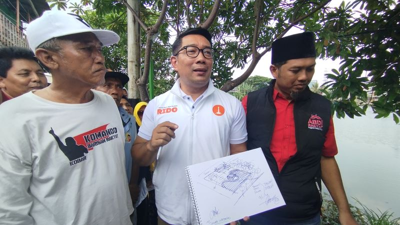 Calon Gubernur (Cagub) Jakarta nomor urut 1, Ridwan Kamil atau RK, berkampanye di Kampung Tanah Merah, Kelurahan Rawa Badak, Koja, Jakarta Utara. RK berjanji membuat taman di salah satu lahan kosong di kawasan itu dan langsung membuat sketsanya.