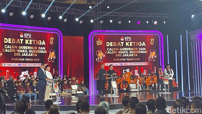 Pertanyaan disampaikan Dharma dalam acara debat ketiga Pilkada Jakarta yang digelar di Hotel Sultan, Jakarta Pusat, Minggu (17/11/2024). Dharma mempertanyakan ide SPBU Terapung yang pernah disampaikan Rano.