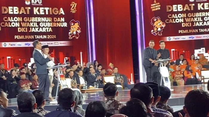 "Bagaimana pandangan Mas Dharma dan Mas Kun yang sempat menyatakan bahwa banjir di Jakarta banyak terjadi karena banjir kiriman dari Bogor? Mengapa wilayah daratan tinggi tidak mampu menahan air hujan, sehingga Jakarta terkena imbasnya?" tanya Rano dalam debat ketiga Pilgub Jakarta 2024, Minggu (17/11/2024).