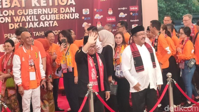 Mulanya, Pramono Anung-Rano Karno tiba di Hotel Sultan, Senayan, Jakarta Pusat. Di dalam rombongan itu tampak loyalis Anies Baswedan, Geisz Chalifah mengenakan jaket berwarna oranye.