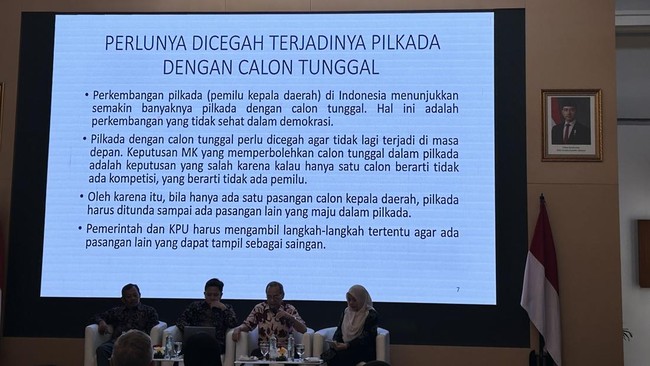 "Karena kalau hanya satu calon dalam Pilkada, berarti tidak ada kompetisi yang berarti tidak ada Pemilu. Inti Pemilu itu adalah berkompetisi," lanjutnya.