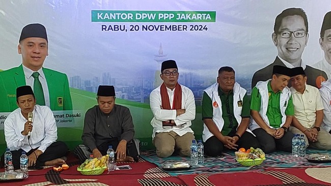 Hal ini disampaikan RK seusai menghadiri acara 'Konsolidasi & Istighosah PPP' di kantor DPW PPP, Jakarta Timur, Rabu (20/11/2024). Awalnya Ketua DPW PPP Jakarta, Saiful Rahmat Dasuki, menyampaikan konsolidasi dan komitmen PPP untuk memenangkan pasangan RK-Suswono (RIDO).