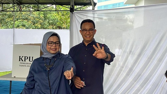 Setibanya di TPS, mereka melakukan registrasi lebih dulu. Tak lama, nama Anies serta keluarganya dipanggil oleh panitia untuk mengambil surat suara dan mencoblos di bilik yang tersedia.
