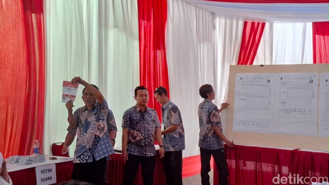 Pembacaan surat suara dipimpin oleh Ketua KPPS, Sucipto. Dia membuka surat suara pertama lalu menunjukkan kepada para saksi.