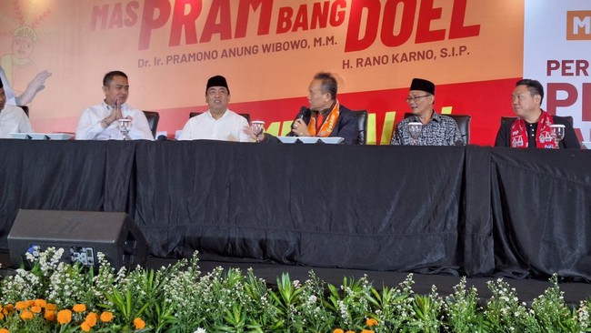 "Kita bersama-sama sudah mendapatkan hasil yang bisa kita lihat, bahwa dari lembaga survei yang terkait dengan kontestasi Pilkada Jakarta ini, semuanya memenangkan Mas Pram dan Bang Doel. Semuanya lembaga survei memenangkan Mas Pram dan Bang Doel," kata Cak Lontong dalam konferensi pers di Hotel JS Luwansa, Jakarta Selatan, Rabu (27/11/2024).