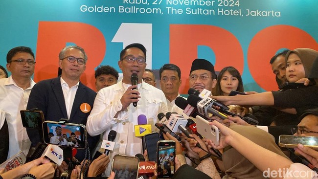 Cagub Jakarta nomor urut 1 Ridwan Kamil (RK) menyoroti hasil perolehan suara pasangan nomor urut 2 Dharma Pongrekun-Kun Wardana di quick count Pilkada Jakarta 2024 yang mencapai 10 persen. RK mengaku ingin menggaet para pemilih Dharma-Kun jika Pilgub Jakarta berlangsung dua putaran.