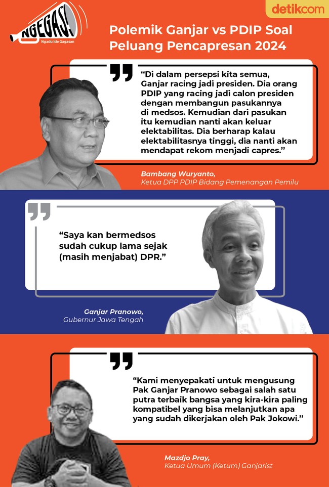 Jakarta - Gubernur Jawa Tengah, Ganjar Pranowo sedang berpolemik dengan partai tempatnya bernaung, PDIP. PDIP menuding Ganjar sedang menyiapkan pasukan di media sosial agar bisa maju sebagai capres 2024. Di tengah polemik ini, kelompok yang mengaku sebagai relawan Ganjar menyatakan deklarasi Ganjar sebagai capres 2024. Siapa yang Anda dukung?
