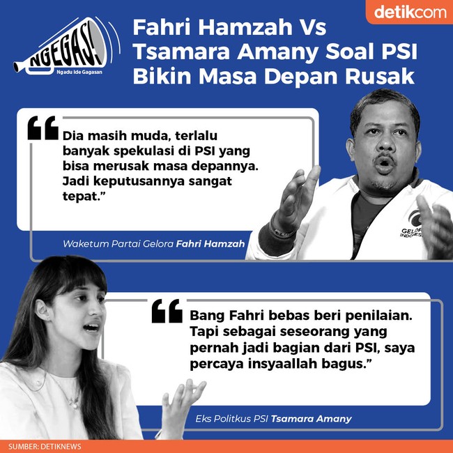 Jakarta - Waketum Partai Gelora Fahri Hamzah menyoroti keluarnya Tsamara Amany dari PSI. Fahri menilai PSI justru akan membuat masa depan Tsamara rusak. Namun, Tsamara membantah komentar Fahri ini.