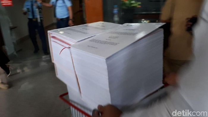 Dari pantauan di Pengadilan Tipikor Jakarta, tampak ada dua mobil KPK memasuki lobi pengadilan pukul 15.45 WIB, Rabu (6/12/2017). Kemudian ada dua orang yang mengeluarkan tumpukan berkas tersebut dan memasukkannya ke troli.