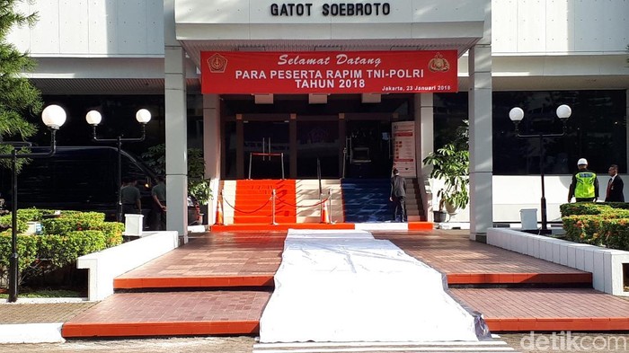 Sementara itu mobil dinas Kapolri Jenderal Tito Karnavian, Panglima TNI Marsekal Hadi Tjahjanto, KSAU Marsekal Yuyu Sutisna, KSAD Jenderal Mulyono dan KSAL Laksamana Ade Supandi sudah terparkir di samping lokasi acara, gedung Gatot Subroto. (aud/nkn)