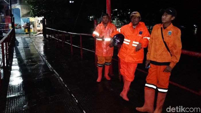 "Iya kita jaga malam ini, standby nanti mulai pukul 20.00 WIB, takut takut kalau banjirnya gede," ujar salah satu petugas PPSU, Ridwan (30), di lokasi.