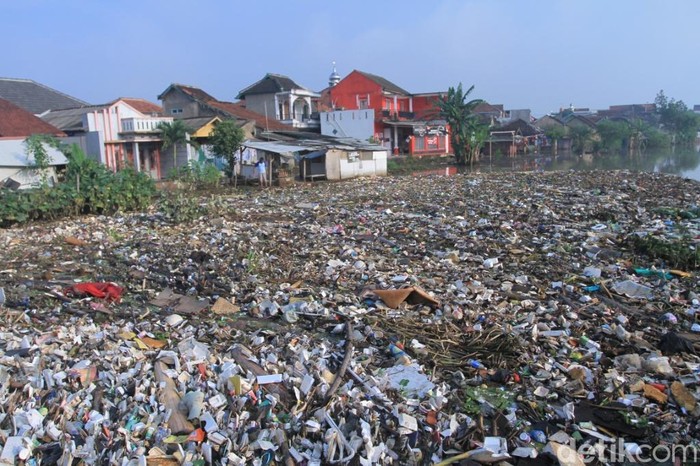 Pantauan detikcom, Selasa (27/2/2018), tumpukan sampah beragam jenis tersendat di Jembatan Sungai Cikeruh. Sungai mempunyai panjang 15 meter dengan kedalaman 4 meter.