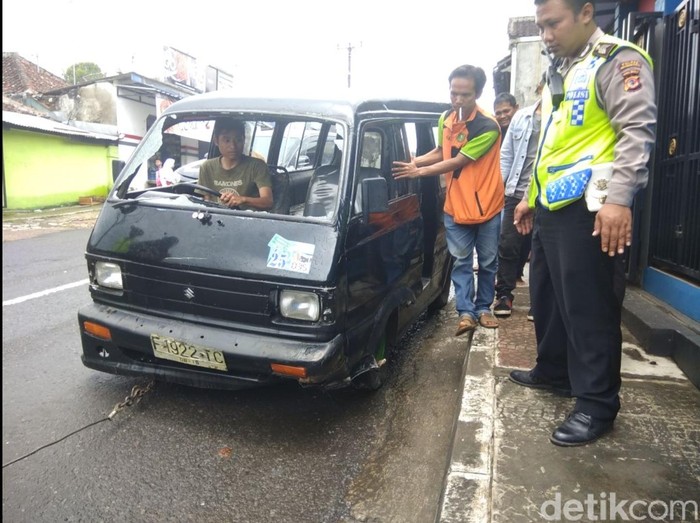 Angkot yang dirusak pria bersenjata palu dan samurai di Kota Sukabumi. (Foto: Syahdan Alamsyah/detikcom) |