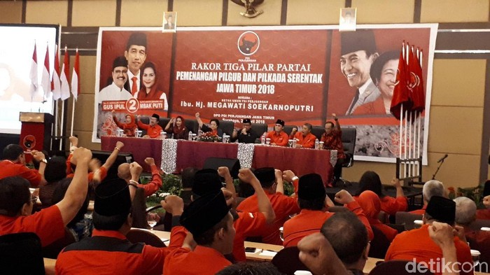 "Memastikan bekerjanya mesin partai dan kerjasama dengan partai koalisi lain dalam satu rampak barisan memenangkan Gus Ipul-Mbak Puti. Pada Rakernas PDIP kemarin, Presiden Jokowi dicalonkan kembali PDIP. Kemenangan Gus Ipul-Puti di Jatim akan melanjutkan kemenangan Jokowi dalam Pilpres 2019 dan Gus Ipul dan Mbak Puti juga telah berkomitken meneken kontrak politik, jika menang pilgub, keduanya akan bekerja memenangkan Jokowi di Pilpres 2019," pungkasnya. (ze/bdh)