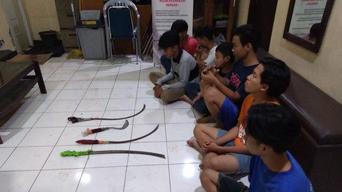 "Dari 7 pelaku, 2 membawa senjata tajam. Barang bukti yang diamankan ada 4 buah arit," lanjut Ewo.