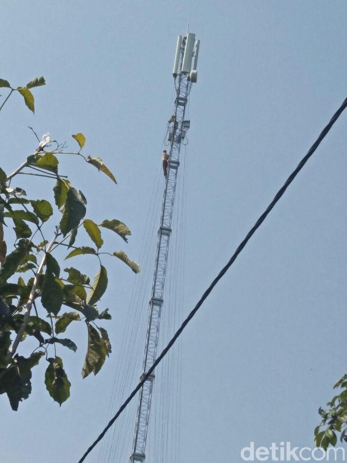"Sejak pagi dia sudah berusaha bunuh diri menabrakkan diri ke truk, setelah itu dia naik ke tower seluler 42 Meter," kata Dedy.