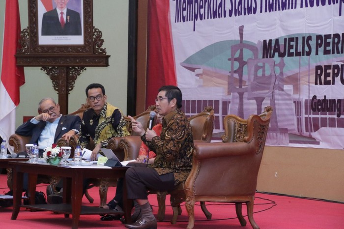 "MPR hanya bisa mengeluarkan Tap yang bersifat beschikking selain melakukan perubahan dan penetapan UUD," ujarnya.