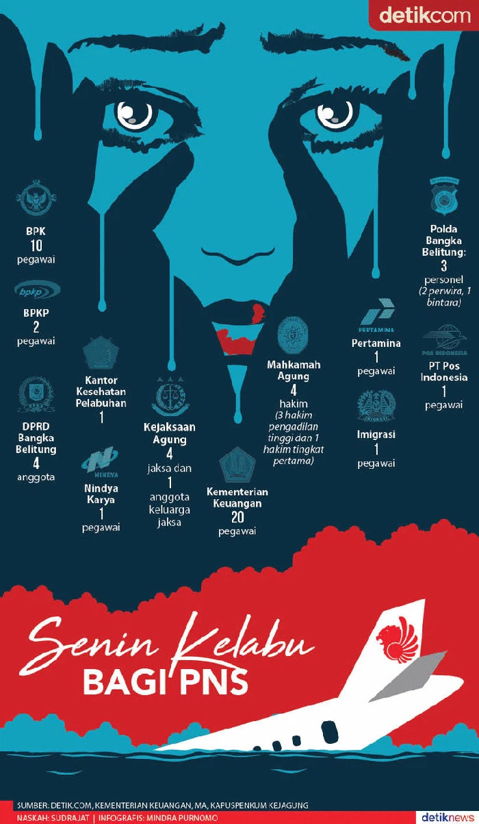 Jakarta - Dari 189 Penumpang Lion Air JT 610 yang jatuh Senin pagi di Karawang, 51 orang diantaranya adalah PNS dari sejumlah lembaga pemerintahan dan DPRD