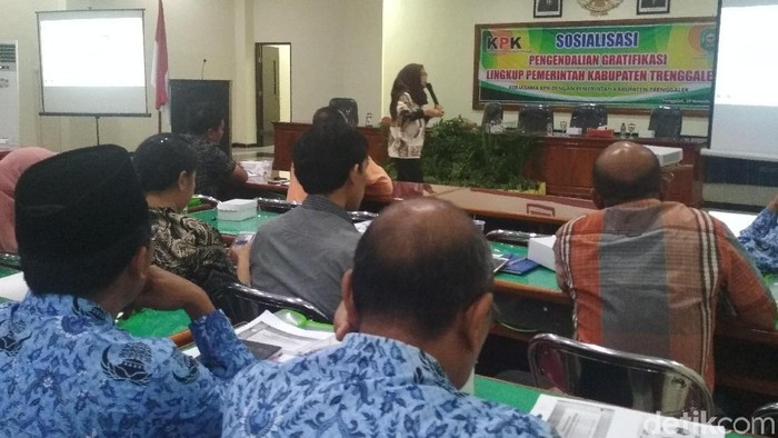 Spesialis Muda Gratifikasi KPK, Andina Rizkita Putri, saat memberikan sosialisasi di Gedung Bhawarasa Trenggalek, mengatakan banyak cara dilakukan oleh para pelaku gratifiksi, mulai dari pemberian yang dilakukan langsung kepada pejabat hingga dititipkan kepada sopir maupun keluarga.