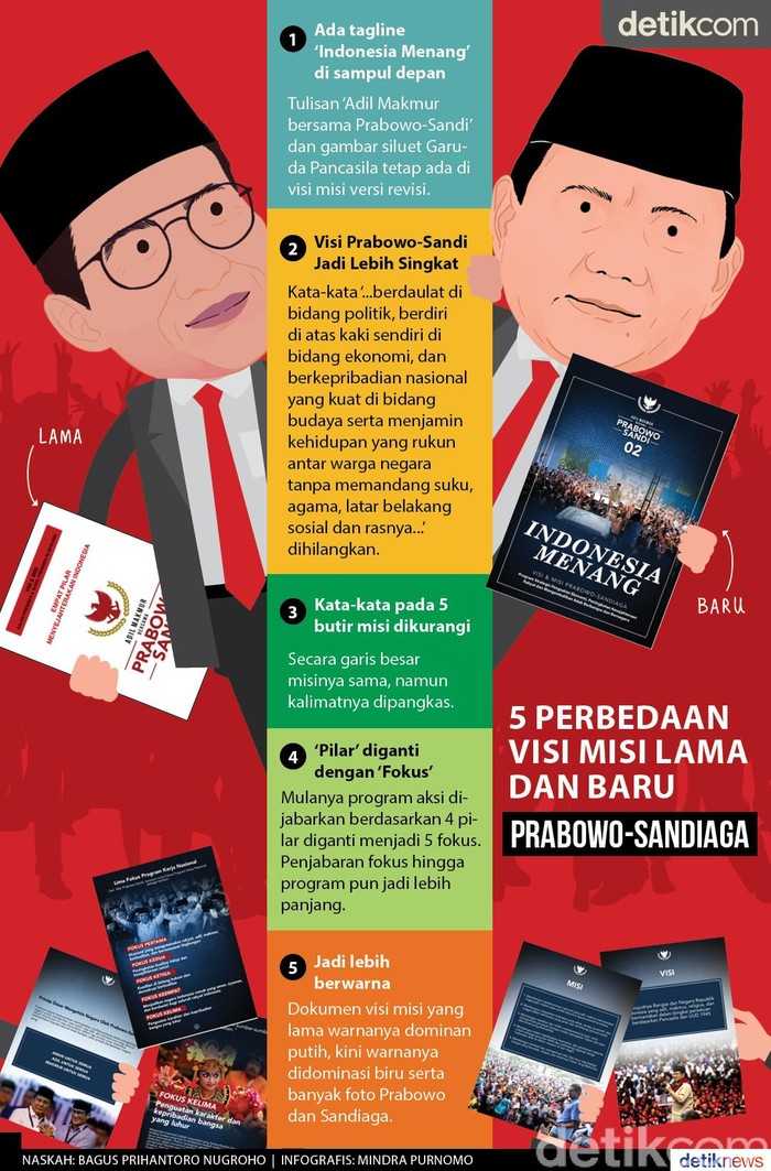 Jakarta - Ada revisi di visi misi Prabowo-Sandi. Apa saja bedanya dengan yang lama?