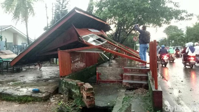 "Nggak ada korban. Kan posisinya baru angin kencang saja tadi, jadi belum ada yang berteduh. Hanya warung kami aja yang nggak bisa jualan karena ketimpa atap halte," katanya.
