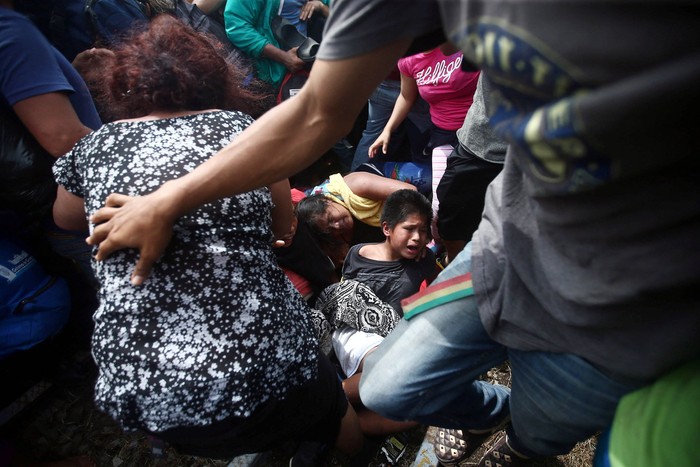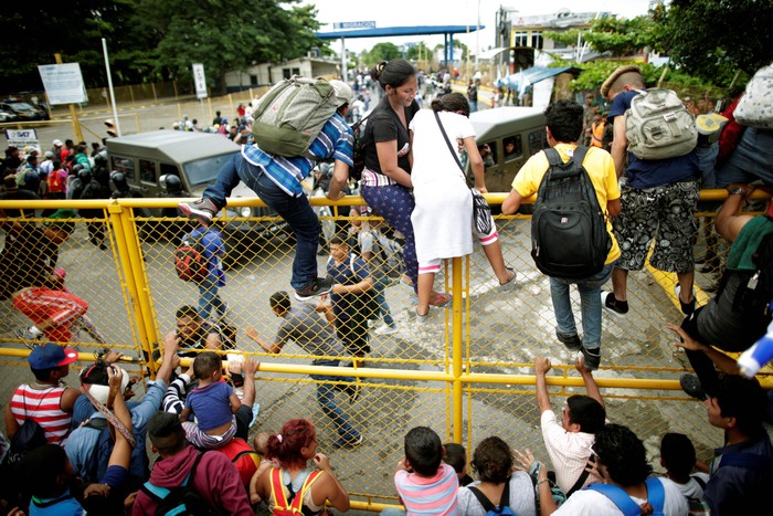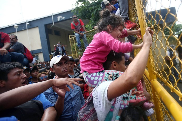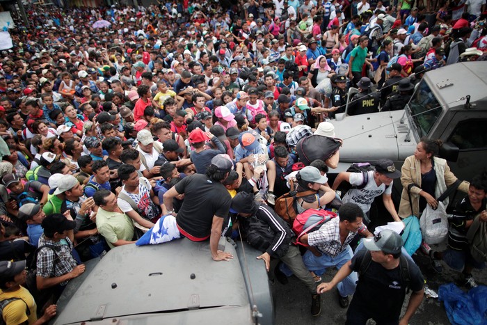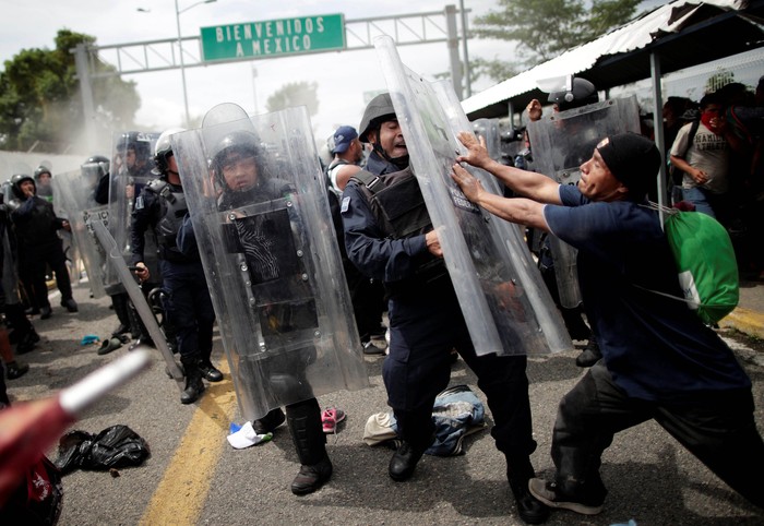 Jakarta - Ratusan imigran Honduras menerobos perbatasan Guatemala untuk masuk ke wilayah Meksiko. Kericuhan terjadi dan mem buat pagar perbatasan roboh.