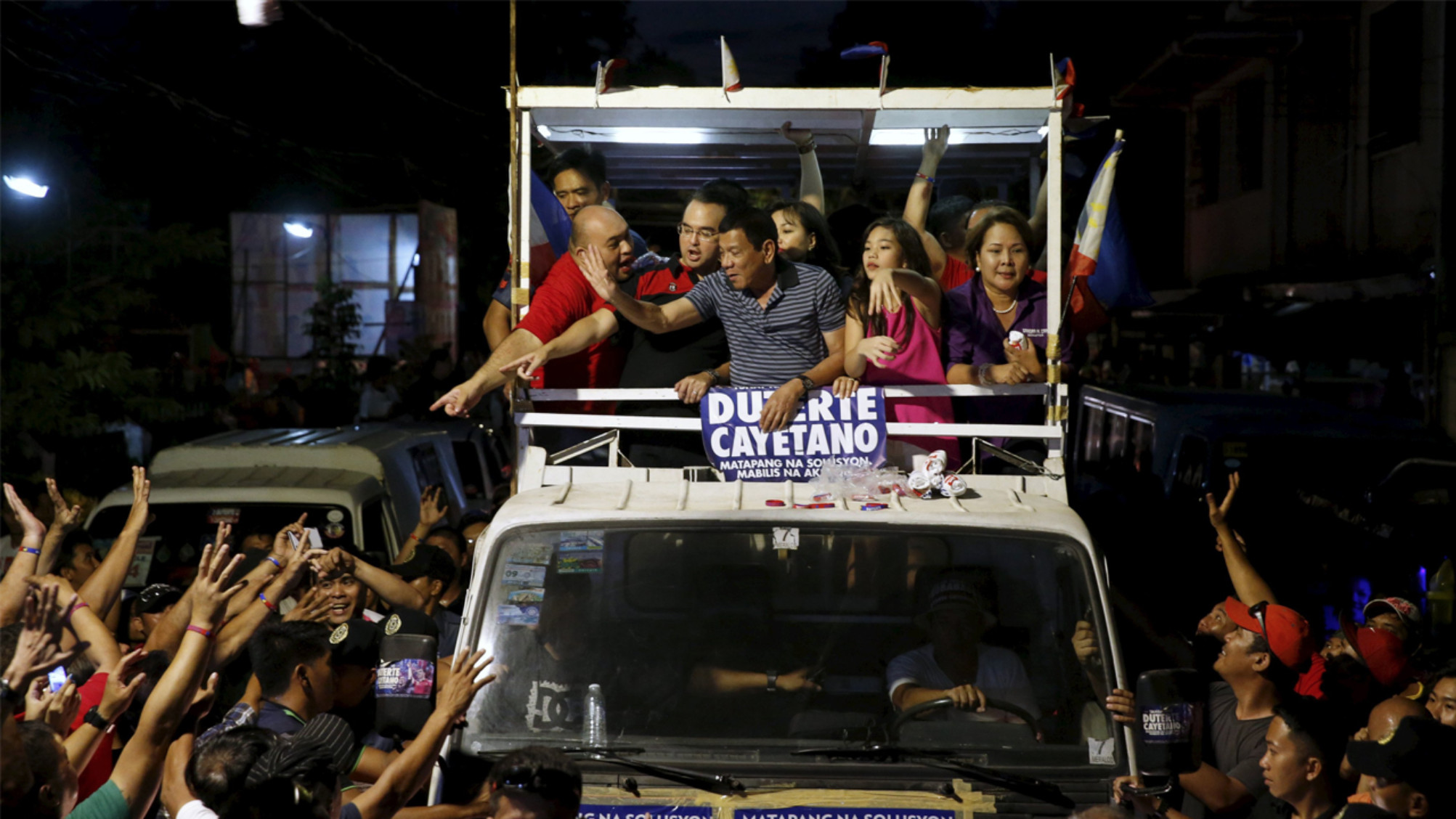 “Sekarang, saat kita menikmati kebebasan, orang yang sering bertindak seperti diktator memimpin dalam jajak pendapat,” Presiden Aquino memperingatkan soal kemungkinan Rodrigo menjadi Presiden Filipina, Rabu pekan lalu. “Mari kita pilih orang bukan lantaran dia populer, karena dia pintar bernyanyi, karena dia penuh kejutan.” Peringatan Presiden Aquino gagal menghentikan laju “kereta” Rodrigo Duterte.
